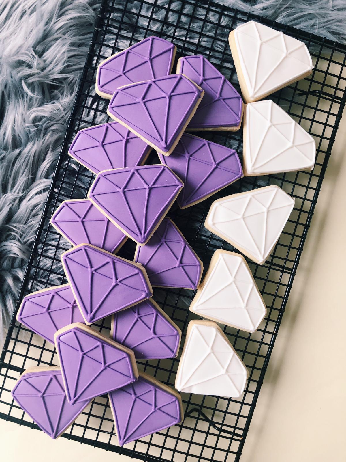 Discover pure elegance with our 'Diamond Delight' cookies! These elegant diamond-shaped cookies make for great sophisticated cookie favours for wedding events, engagement party gifts, or edible presents for anniversary celebrations. They also make delightful party favours or gifts for family and friends. Order now and let the sparkle and sweetness shine at your next event!